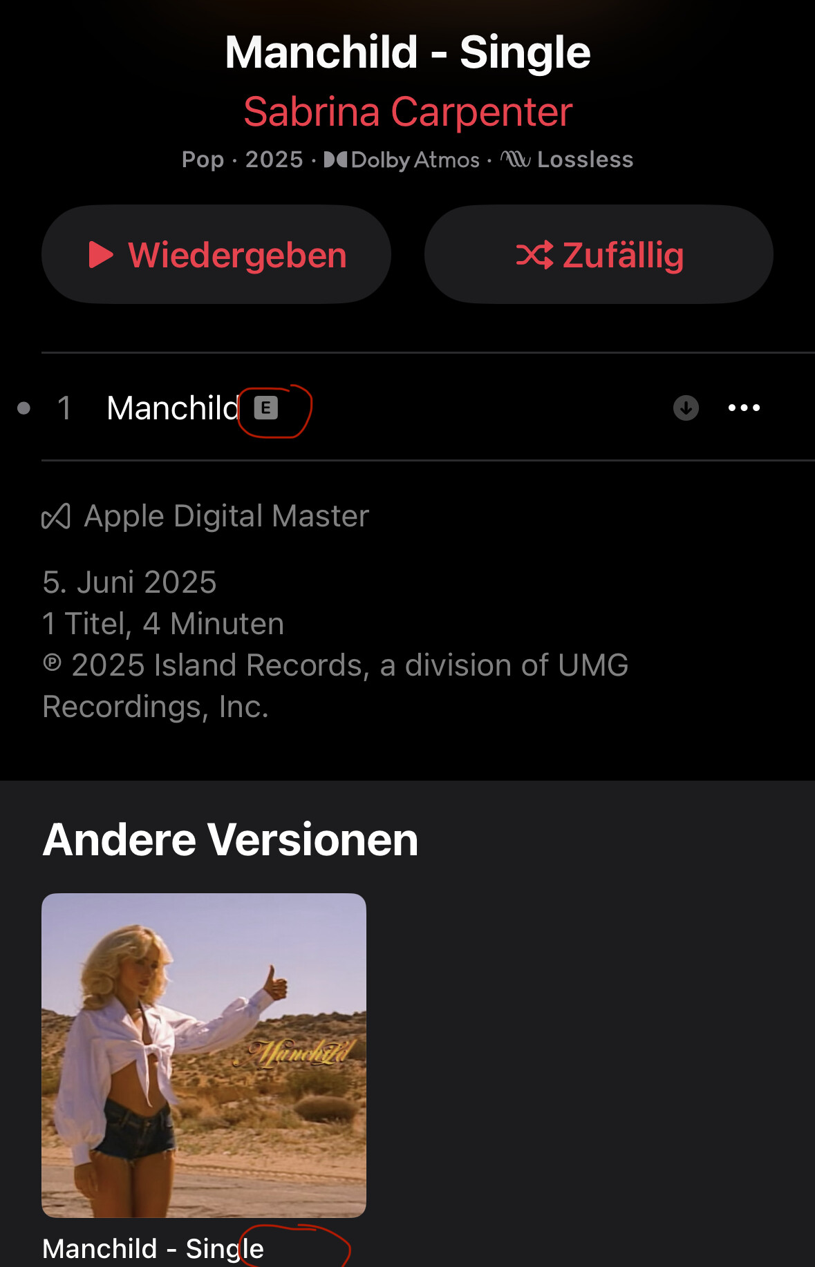 Das zensiert Apple nicht selber, sondern die Künstler:innen, z. B., um noch jugendfrei zu sein. Auf Apple Music kannst du aber meistens nach unten scrollen und dann zur „echten“ Version wechseln.